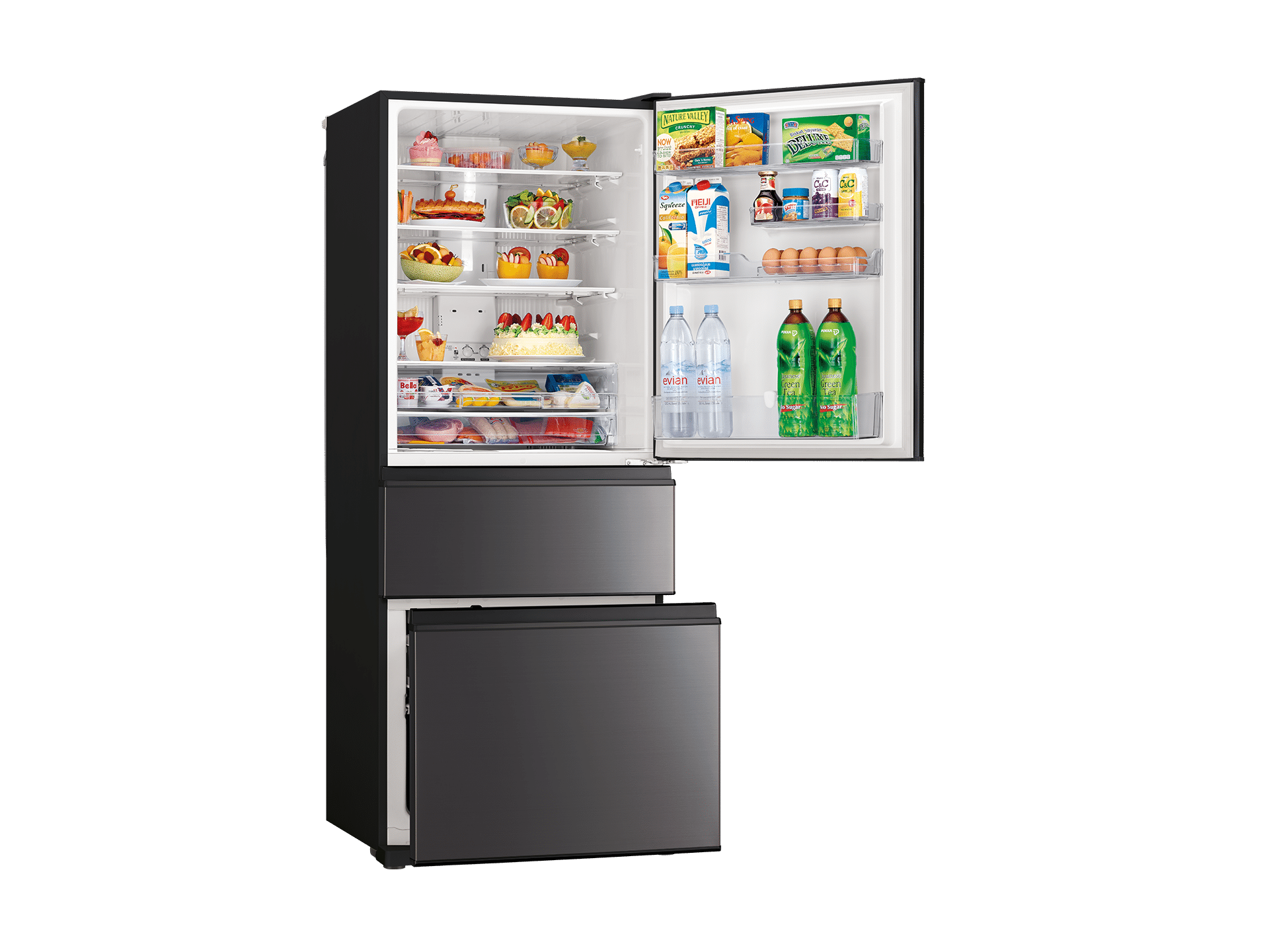 Three door fridges are designed to improve everyday organisation and make efficient use of kitchen space. With separate compartments for fresh food, vegetables, and frozen items, the Mitsubishi Electric 450L bottom mount model allows items to be stored more clearly and accessed easily, without opening the entire fridge during daily use.